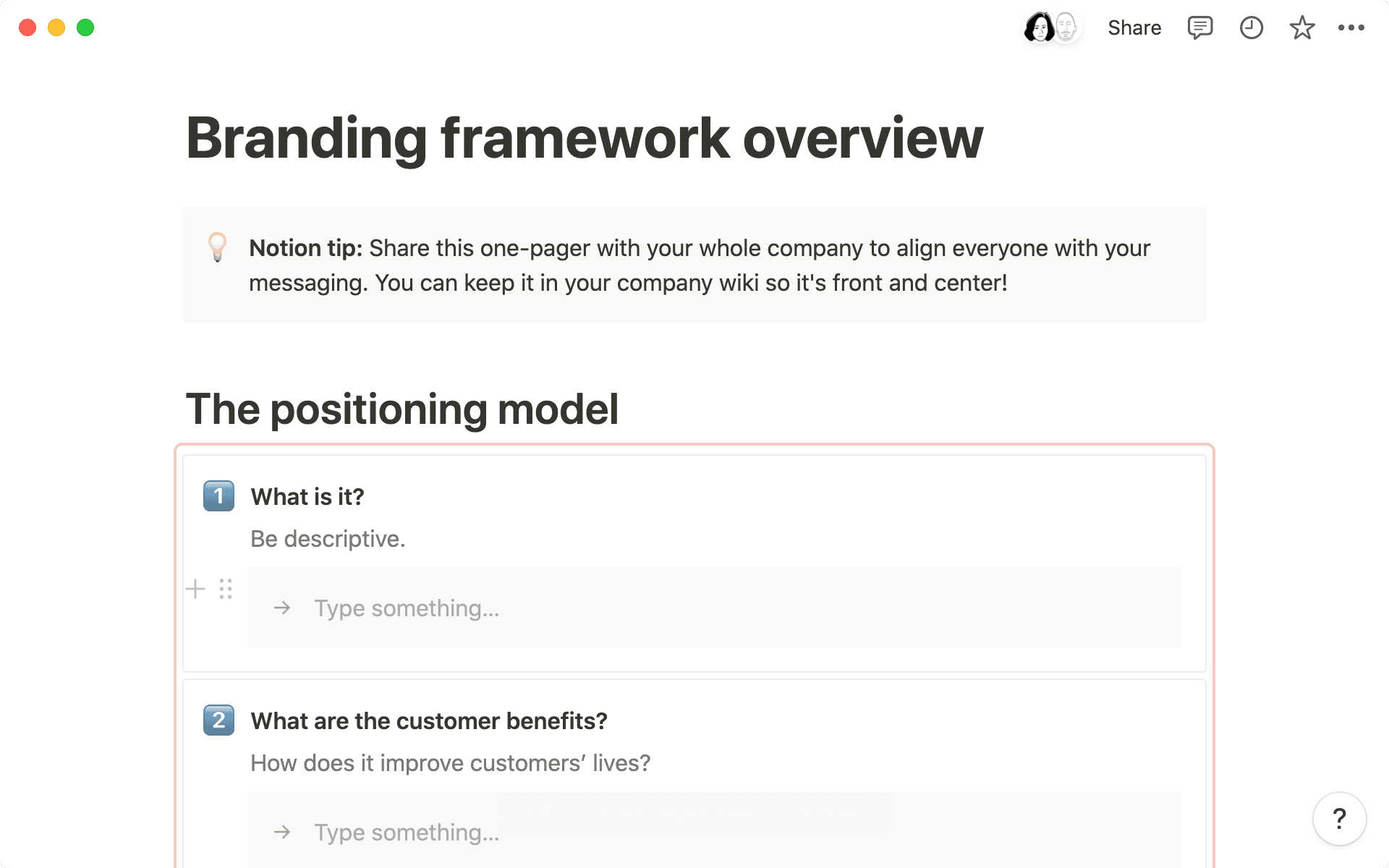 Now, you can try his framework as a Notion template — by the end of the template, you'll crystallize what makes your product unique and how to communicate it.
