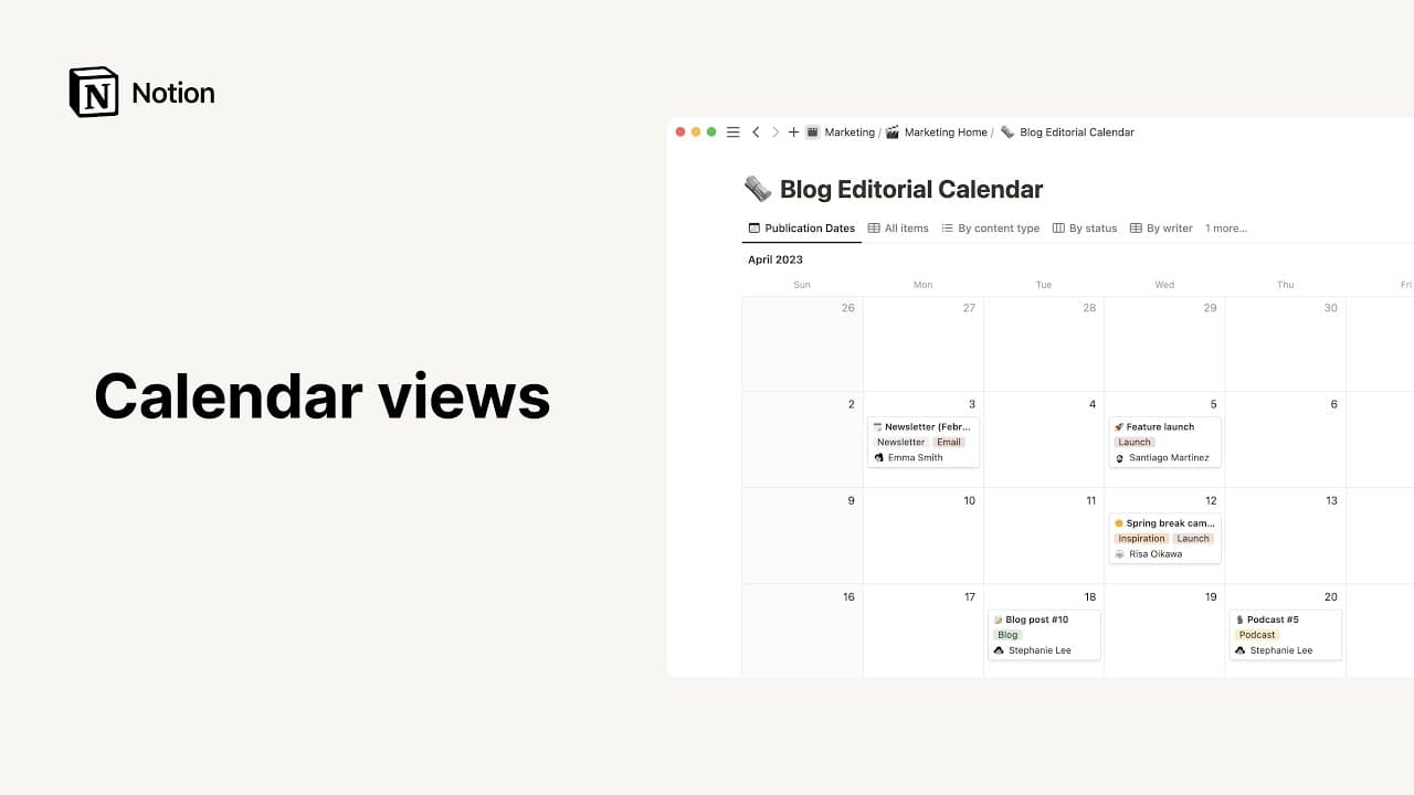 Want to track your database’s events with the rest of your appointments, meetings, and plans? You can add your Notion database to Notion Calendar so you can see all your important dates in one place! You can even update your database dates directly from Notion Calendar. Learn more about how to do this here →